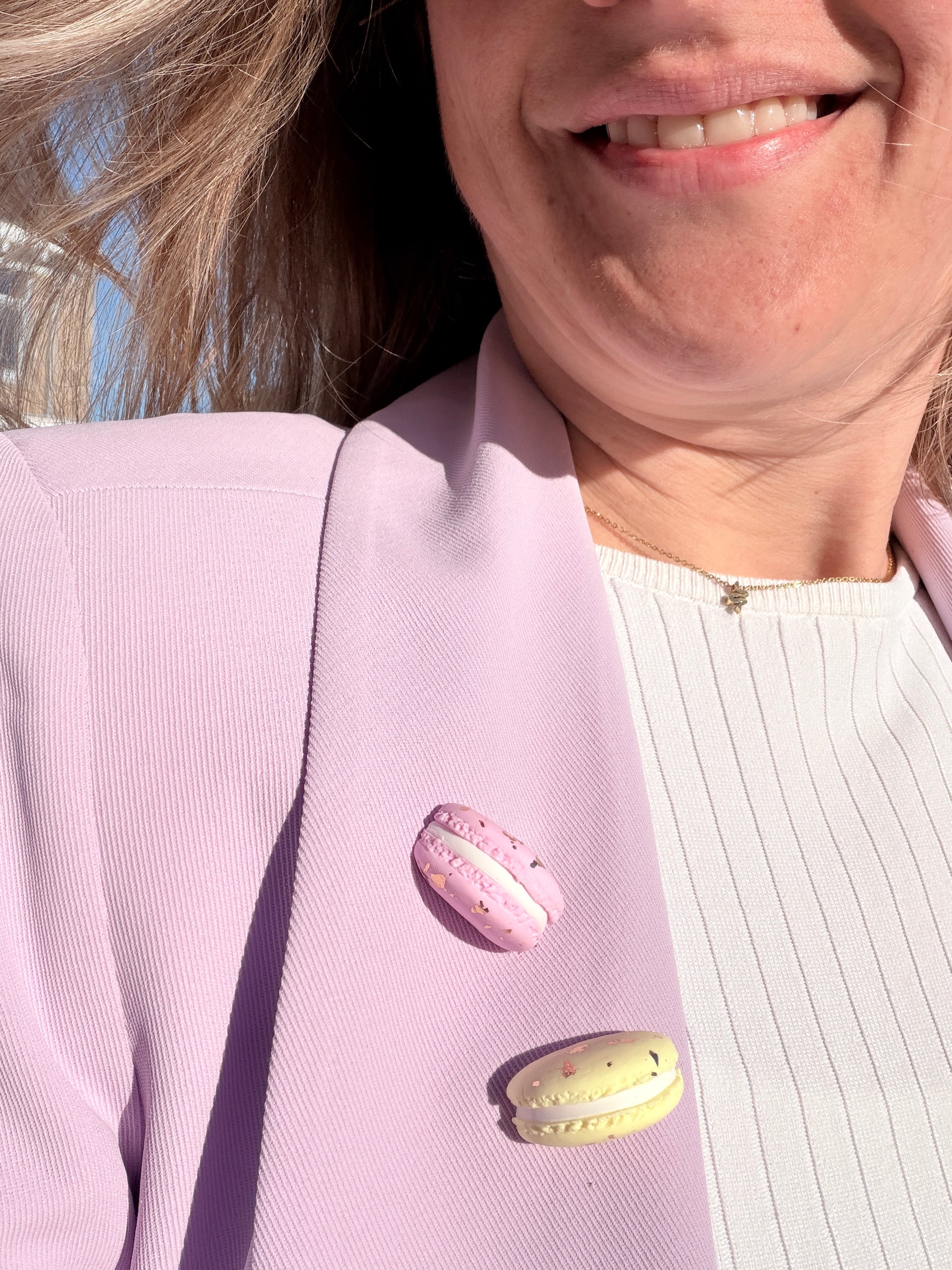 Soms komt een idee per ongeluk opzetten terwijl ik aan het werk ben in mijn atelier... Een zachtgele en zachtroze macaron gecombineerd tot een prachtige set, die ontstond toen het dunne bladmetaal in flakes terecht kwam op mijn werktafel. Van het een kwam het ander en kijk daar, een luxe lente-set voor het zonnige voorjaar!