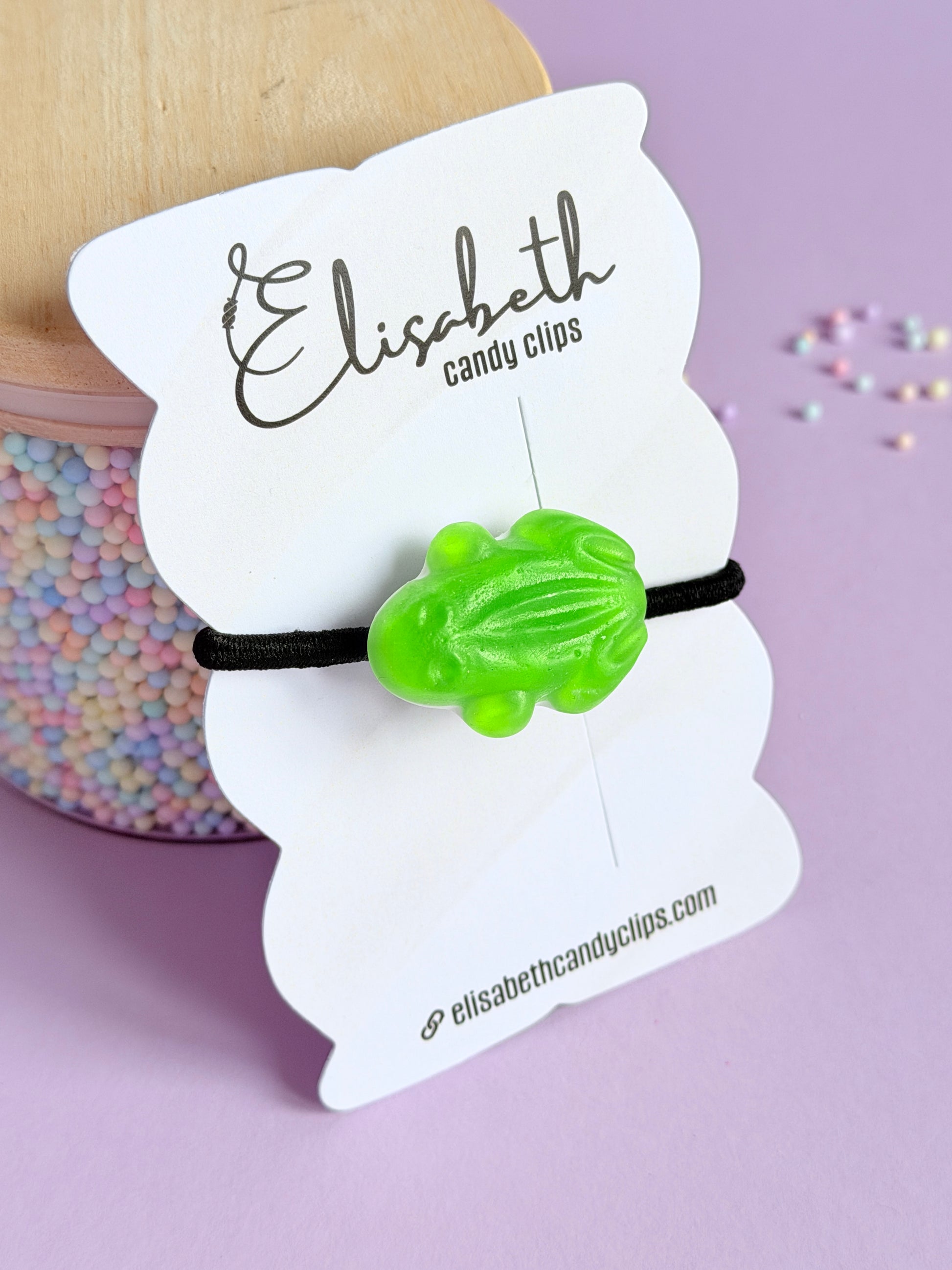 Dé enige echte snoepkikker maar dan voor in het haar! Elke kikker is uniek en heeft net een andere vorm, maar ziet er levensecht uit. Een must-have voor jullie kleine snoeperds!